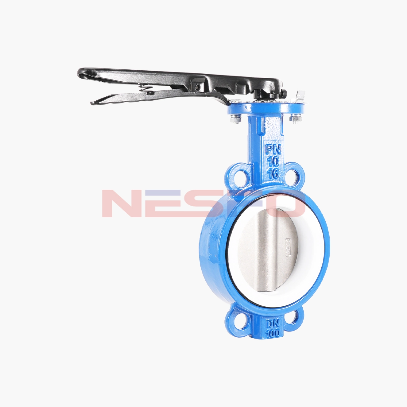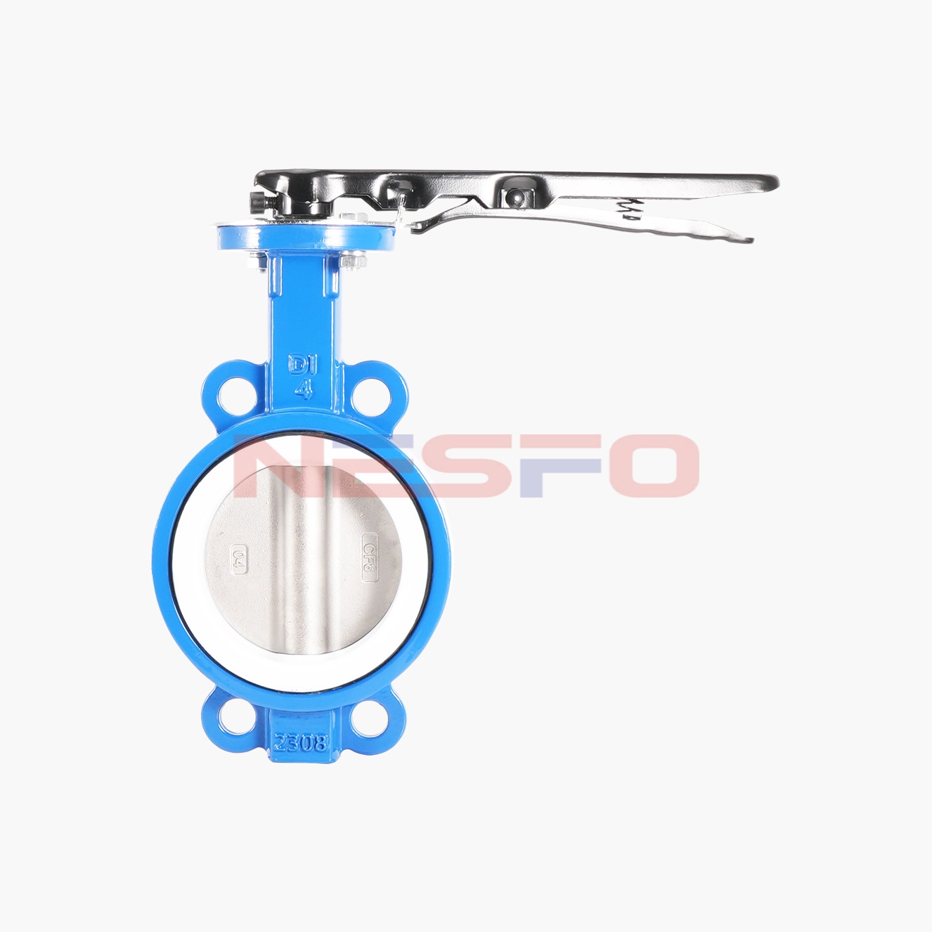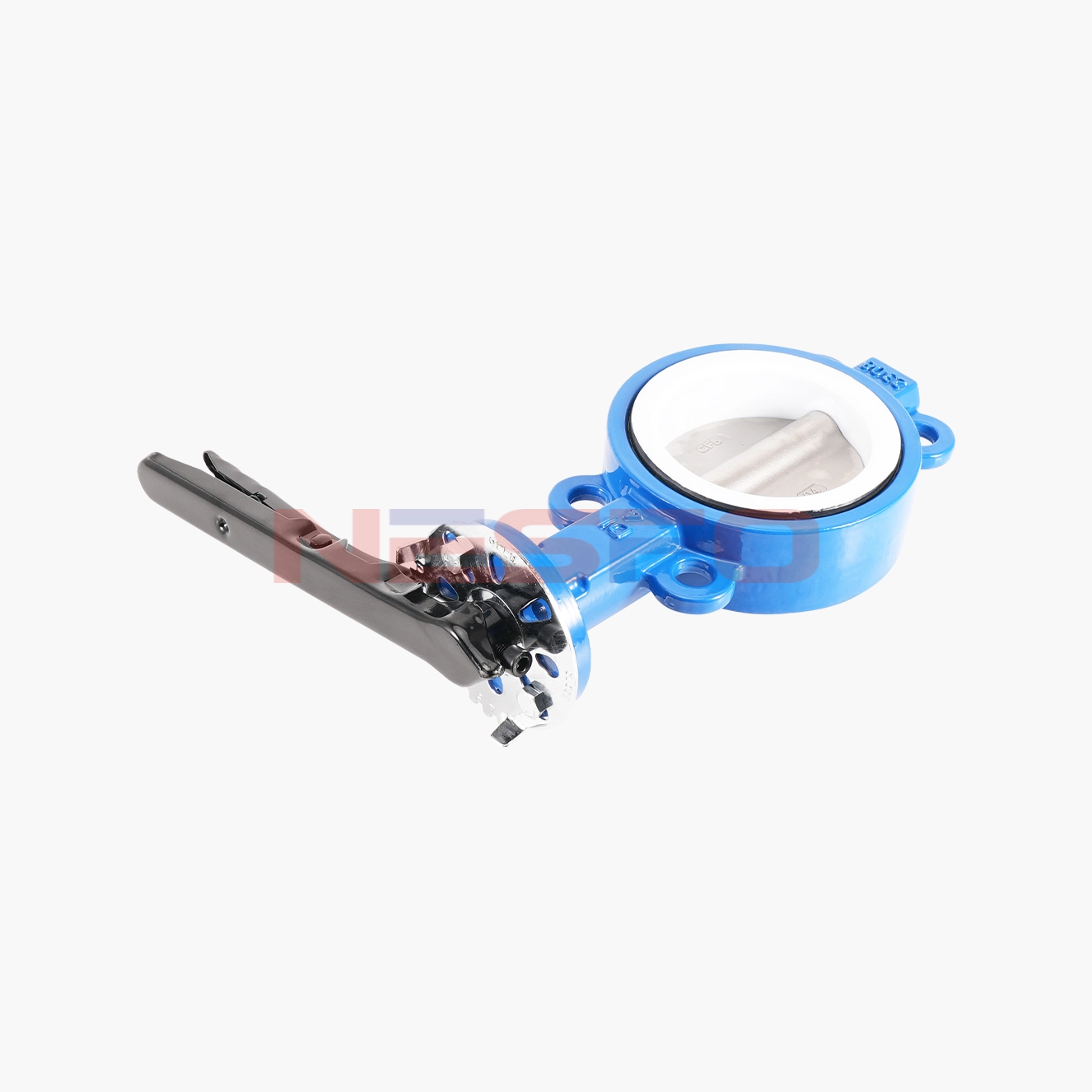 D71F-16Q手柄对夹蝶阀可适用于食品、医药、化工等净管路及工业环保、水处理、高层建筑、给排水管路作启闭或调节介质流量之用。手柄对夹蝶阀的蝶板安装于管道的直径方向。在蝶阀阀体圆柱形通道内,圆盘形蝶板绕着轴线旋转,旋转角度为0°~90°之间,旋转到90°时,阀门则呈全开状态。