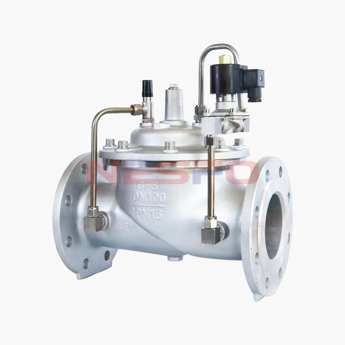 600X电动控制阀由主阀、电磁导阀、针阀、球阀、微形过滤器和压力表组成水力控制接管系统。通过电磁导阀可以实现对阀门开启和关闭的遥控。加装附加装置后,可控制开启和关闭的速度。电控水力控制阀利用导阀控制阀门的开启和关闭,节省能源。可代替其它阀门大型电动装置。电控水力控制阀产品用于高层建筑、生活区等供水管网系统及城市供水工程。600X电动控制阀是一种以电磁阀为向导阀的水力操作式阀门。常用于给排水及工业系统中的自动控制,控制反应准确快速,根据电信号遥控开启和关闭管路系统,实现远程操作。600X电动控制阀可取代闸阀和蝶阀用于大型电动操作系统。阀门关闭速度可调,平稳关闭而不产生压力波动。该阀门体积小、重量轻、维修简单、使用方便。电磁阀可选用交流电220V,或直流电24V,可根据场合选用常开或常闭型均可。