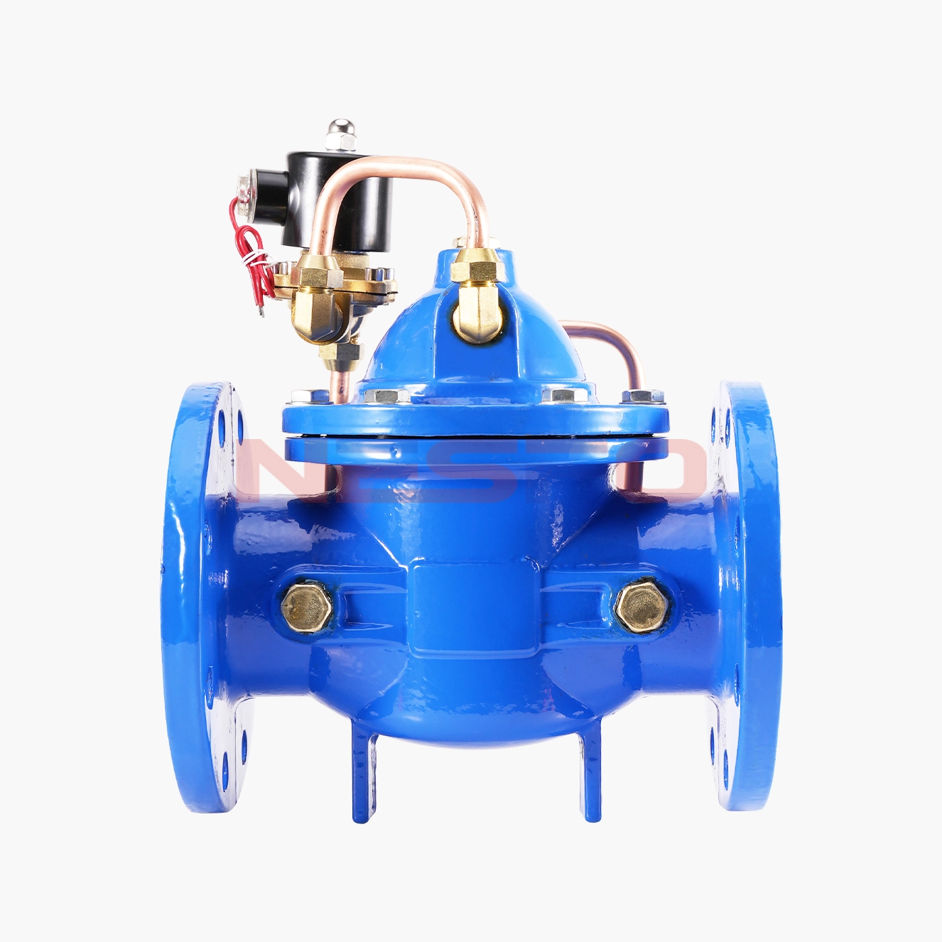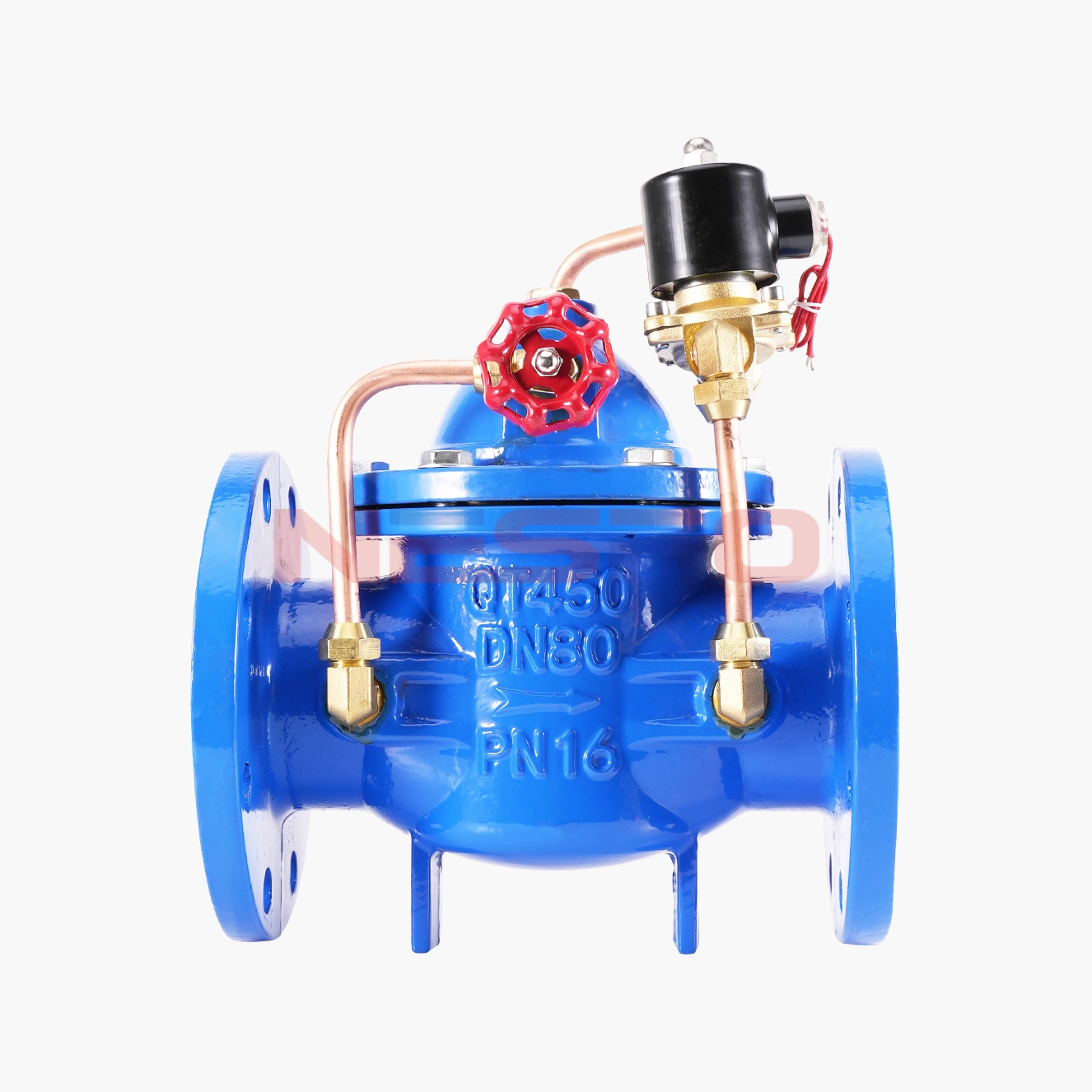 600X电动控制阀由主阀、电磁导阀、针阀、球阀、微形过滤器和压力表组成水力控制接管系统。通过电磁导阀可以实现对阀门开启和关闭的遥控。加装附加装置后,可控制开启和关闭的速度。电控水力控制阀利用导阀控制阀门的开启和关闭,节省能源。可代替其它阀门大型电动装置。电控水力控制阀产品用于高层建筑、生活区等供水管网系统及城市供水工程。600X电动控制阀是一种以电磁阀为向导阀的水力操作式阀门。常用于给排水及工业系统中的自动控制,控制反应准确快速,根据电信号遥控开启和关闭管路系统,实现远程操作。600X电动控制阀可取代闸阀和蝶阀用于大型电动操作系统。阀门关闭速度可调,平稳关闭而不产生压力波动。该阀门体积小、重量轻、维修简单、使用方便。电磁阀可选用交流电220V,或直流电24V,可根据场合选用常开或常闭型均可。